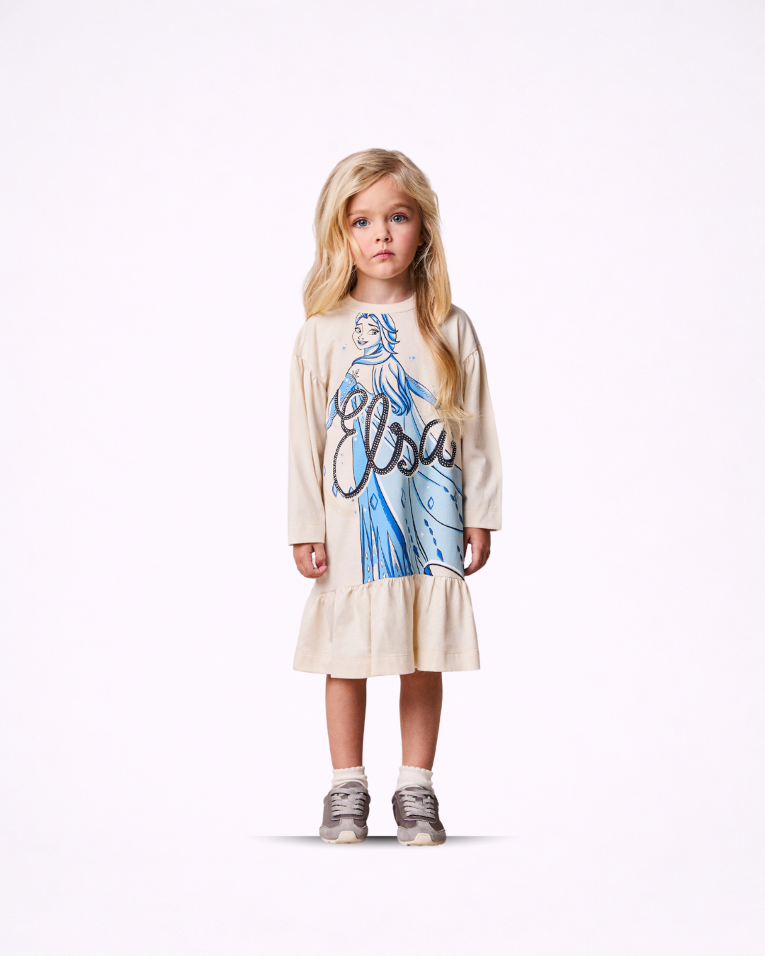 Vestido infantil confeccionado em tecido confortável e macio, perfeito para acompanhar as pequenas com leveza e liberdade durante o dia. A peça traz uma estampa encantadora da personagem Elsa, que adiciona um toque de fantasia e magia ao look.